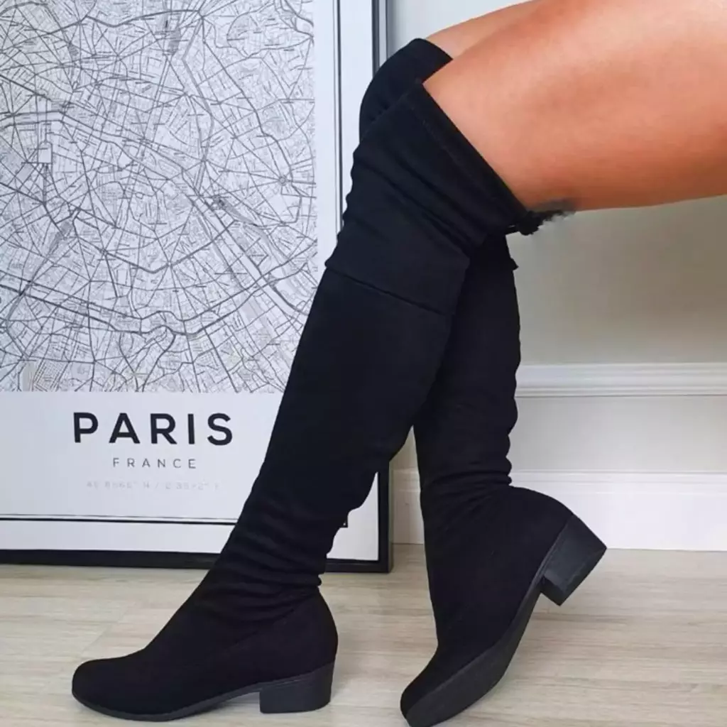 Bota De Camurça Franzida Cano Alto